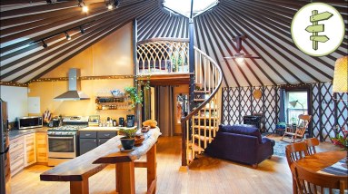 Magical Yurt with Spiral Staircase Loft & Exterior Wooden Shell - Full Tour